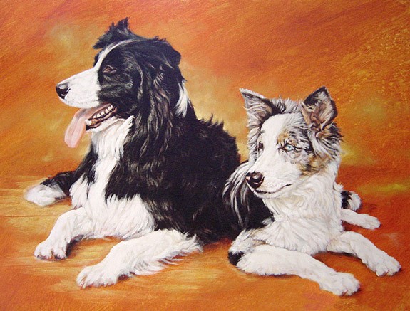 Border collie portret in opdracht, Northumbrian type en Blue merl.