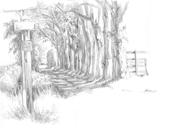 Potloodschets van het oude Binnenpad te Oud-Beijerland.
