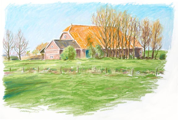 Pleinair studie in pastel, gemaakt bij Oud-Beijerland, Zuid-Holland.