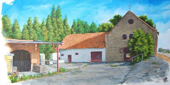 Acrylschilderij van de oude boerderij van boer Visser, Oud-Beijerland.